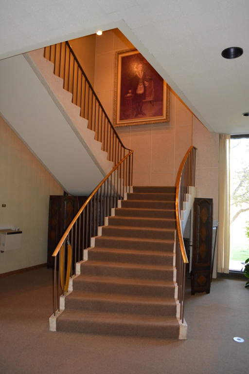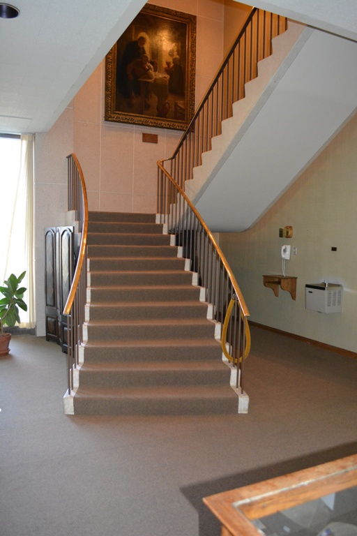 The North Stairway Over the landing of the north stairway is an original oil painting presented to El Paso Lodge in 1909 by Brother Verner Z. Reed. Painted by Henry Salem Hubbell (1870-1949), a distinguished American artist whose works appear in many international galleries, the painting is entitled "THE RETURN." It obviously depicts the return home of the errant daughter seeking the blessing of the village priest and the forgiveness of her parents. Other than being a beautiful painting by a distinguished artist, it lacks any significance in relation to the fraternal building in which it hangs. The elaborate frame is attributed to Tiffany.